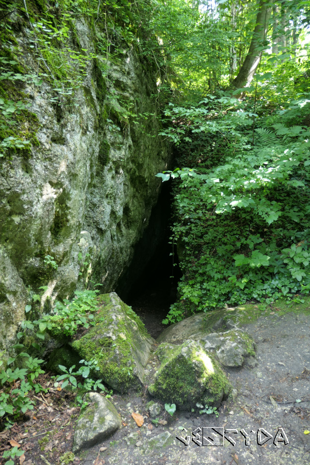 Zegarowych Skałach jaskinia zawdzięczająca swoją nazwę zegarowi lub dzwonowi, którego bicie dochodzi z niej w wigilię Bożego Narodzenia oraz w Noc Świętojańską. Powstała w Skale Jamie (Zegar, czasem nazywanej Dolnymi Skałami) od 22 listopada 1970r. objętej ochroną jako pomnik przyrody nieożywionej, a zbudowanej z wapieni skalistych górnej jury. Charakteryzuje się poziomym rozwinięciem i długością 155m. Do jej wnętrza wprowadza długi i dość wąski, rozwinięty na szczelinie widocznej w stropie, korytarz kończący się obszerną komorą. Z niej na południowy-zachód za 3m skarpą obszerny korytarz o opadającym dnie doprowadza do rozwidlenia z dwoma równoległymi, krótkimi i ”ślepymi” przesmykami. Na wschód zaś, za niewielką salką, odbiegają dwie szczeliny. Lewa jest niedostępna, aczkolwiek po niemal 60m wyprowadza na zewnątrz środkowym otworem zwanym Drzwiczkami od Pieca; niegdyś przejście to uważano za osobny obiekt o nazwie Schronisko przy Jaskini Zegar. Prawa - niska i szeroka meandruje kilkadziesiąt metrów, po czym również kończy się na zewnątrz "bramą" (wschodnie wejście).