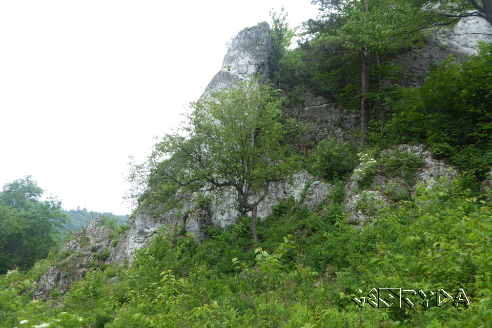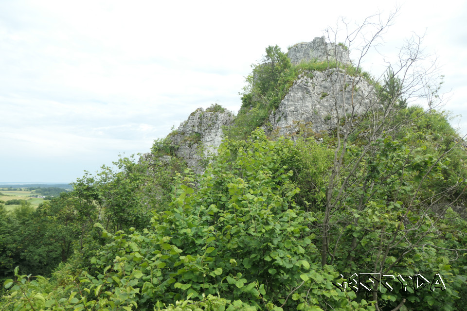 Doliny Wodącej. Przybierają one kształty baszt oraz iglic wznoszących się nawet 100m ponad jej dnem. Związane są z procesami krasowymi przeobrażającymi platformę wapieni górnojurajskich przez wody podziemne. Duża część z nich charakteryzuje się obecnością mikroform krasowych na powierzchniach oraz rozwojem jaskiń, do których należą m.in.: