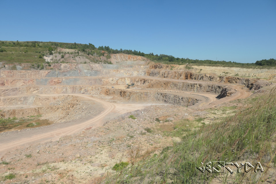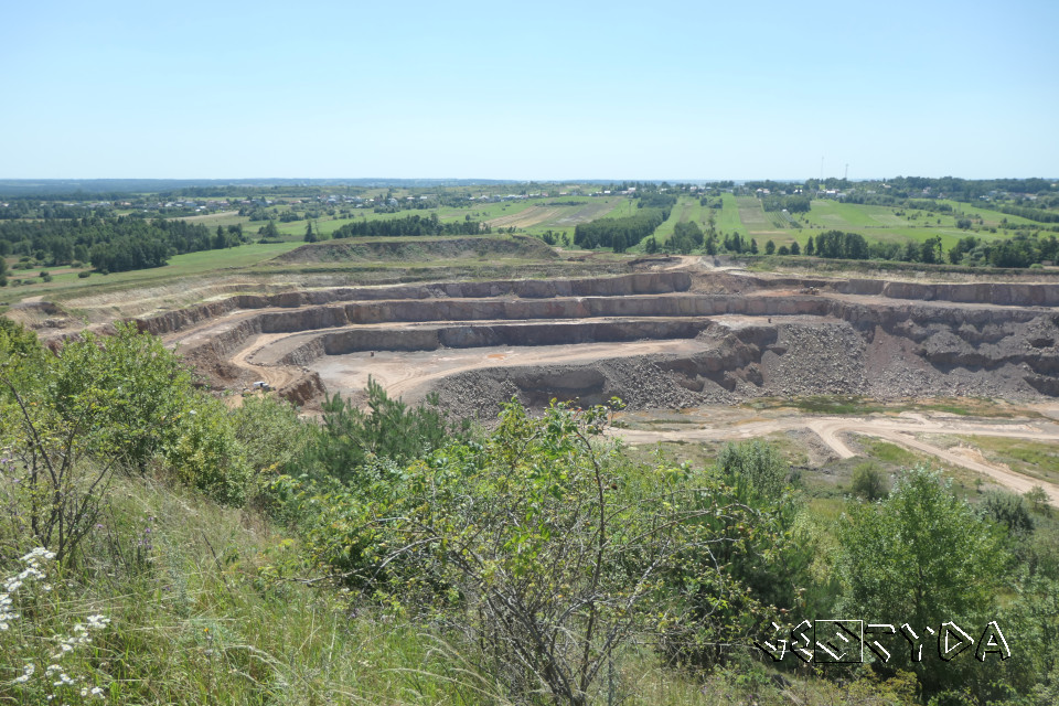 Czynny od 1994r. kamieniołom zlokalizowany w masywie Góry Łgawy. Wapienie eksploatowane są jako kruszywo dla budownictwa i drogownictwa oraz na nawozy wapniowo-magnezowe. W tym celu wykorzystano niewydzieloną wcześniej enklawę złoża oddzieloną od reszty partią skrasowiałą o sporej miąższości, gdzie w czasie eksploatacji ujawniły się bloki niezniszczone przez strzelanie. Wydobycie prowadzono metodą mechaniczną na niewielką skalę. W ciągu kilku lat materiał bloczny został zupełnie wyeksploatowany, a złoże jest pod tym względem nieperspektywiczne. W wyniku pozyskiwania surowca odsłonięto profil utworów górnodewońskich oraz obraz skomplikowanych i interesujących zjawisk tektonicznych, a także liczne skamieniałości: gąbki krzemionkowe, ramienionogi, koralowce, głowonogi, ślimaki, małże, człony liliowców i skamieniałości śladowe.